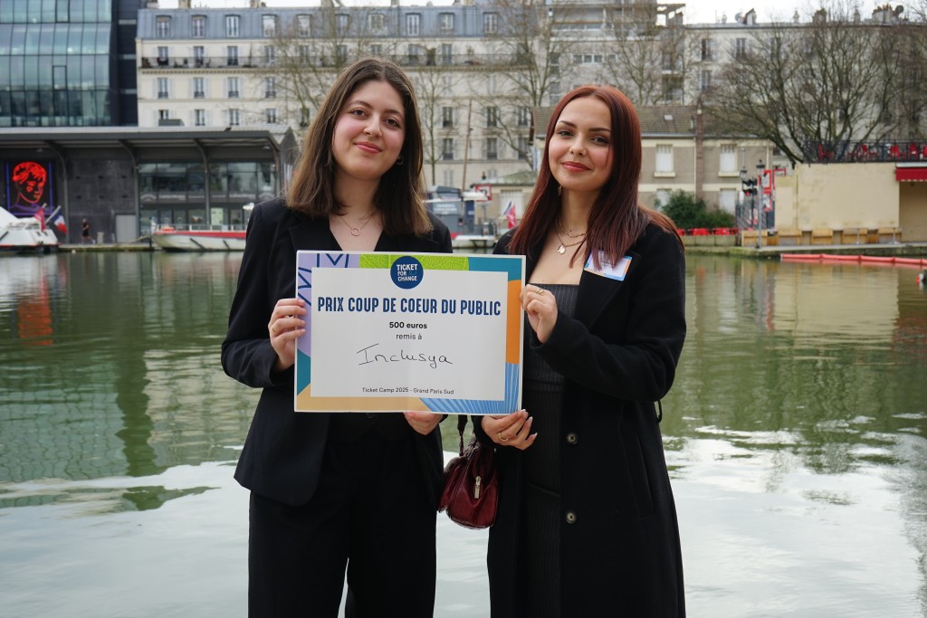 Inclusya porté par Lyna (Université Évry Paris-Saclay), Lauricia (3A) et Ahinoa (UPEC), récompensé pour son ambition de faciliter l’inclusion des personnes en situation de handicap en simplifiant la mise en relation entre les différents acteurs du territoire. - Prix des partenaires